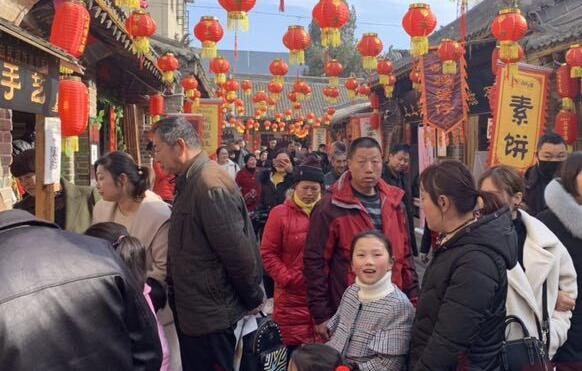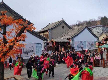 此次新春廟會(huì)從農(nóng)歷正月初一開始,一直持續(xù)到正月三十。十時(shí)許,游客接待中心門前的廣場上,鑼鼓鐃鈸齊鳴,獅子隨著鼓點(diǎn),忽而翹首仰視,忽而回頭低顧,忽而搖頭擺尾,妙趣橫生;銀龍呼嘯而過,在舞龍隊(duì)員精湛的表演下,巨龍騰挪盤旋。游客們紛紛拿出手機(jī),記錄這熱鬧的場面。