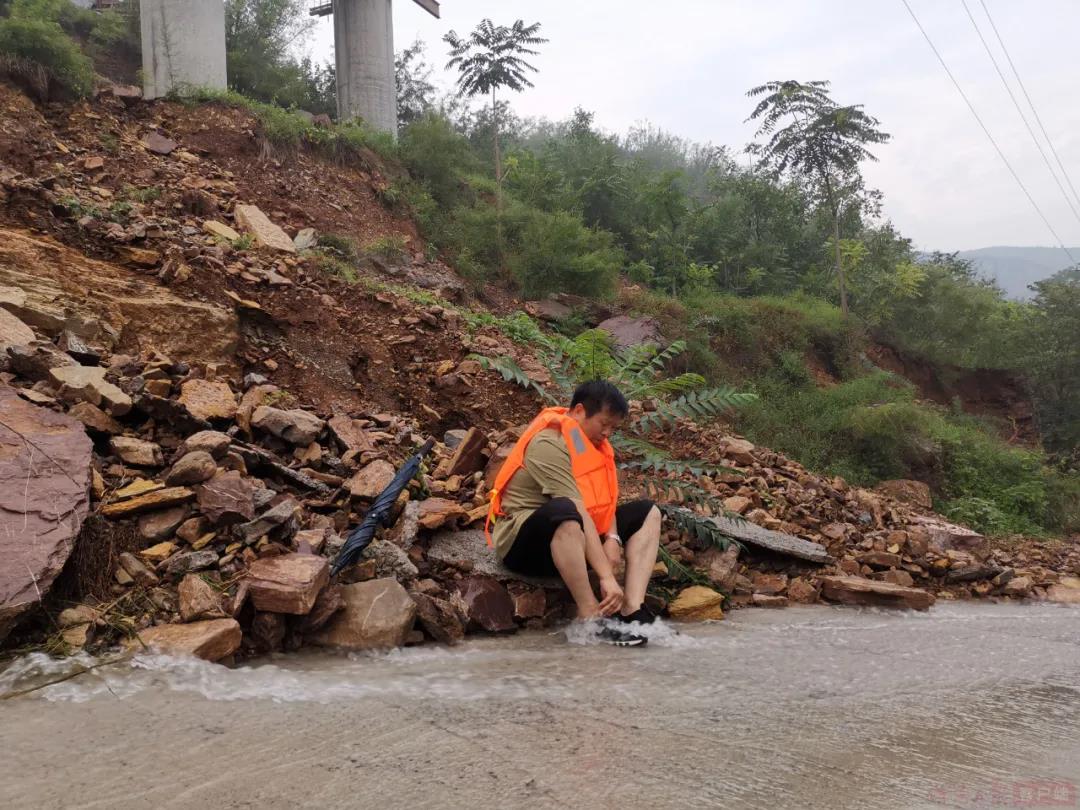 傍晚時(shí)分,徐光書(shū)記帶隊(duì)到春花自然村轉(zhuǎn)移人員時(shí),咆哮的山洪沖上道路,湍急的水流淹過(guò)膝蓋,進(jìn)村的道路已經(jīng)無(wú)法再行走。徐書(shū)記帶領(lǐng)著要轉(zhuǎn)移的群眾從楊伏發(fā)院子里架起鐵梯,帶領(lǐng)群眾從山坡上轉(zhuǎn)移到了村大隊(duì)部進(jìn)行避險(xiǎn)。村民劉三白說(shuō):“要不是徐書(shū)記和村干部,俺老兩口都非得叫大水沖走不可……”。