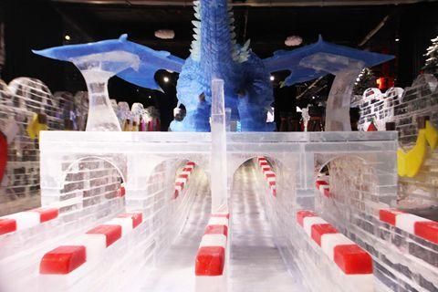 想來點(diǎn)刺激的?那還不趕快站上玻璃臺向下看,不用VR,平地也能讓你體驗(yàn)到如履薄冰.步步驚心的“萬丈深淵”,游園從這里開始才夠嗨!還有去年的超人氣項(xiàng)目得以保留,比如人形冰墻,海賊船彎道冰滑梯,桌上冰壺球,冰壺保齡球,龍口穿越等精彩等你來。