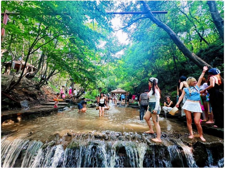 大地炙烤,酷暑難耐,位于伏牛山脈東麓的方城縣七峰山生態(tài)旅游區(qū)打出了“夏季23℃”的清涼標(biāo)語。進(jìn)入景區(qū),沿著溪流步道拾級(jí)而上,不久便可抵達(dá)長(zhǎng)約2公里的“七峰峽”戲水峽谷,該峽谷處于幽林深處,一旁的瀑布如絹絲般飄落,清涼溪水潺潺作響,成功吸引了大批游客避暑打卡。