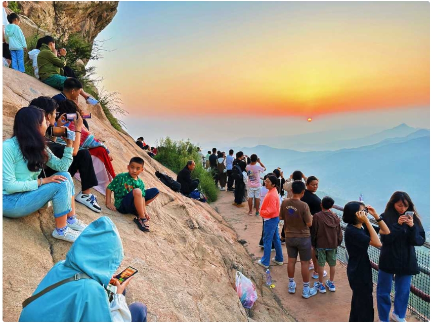 游客在方城縣七峰山生態(tài)旅游區(qū)游觀看日出。劉文舉 攝