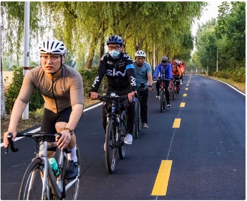 傍晚時(shí)分,自方城縣城一路向北行駛到楊集鎮(zhèn)尹莊村附近,除了沿途的田園風(fēng)光外,路上三三兩兩的騎行愛好者構(gòu)成了另一道風(fēng)景線。