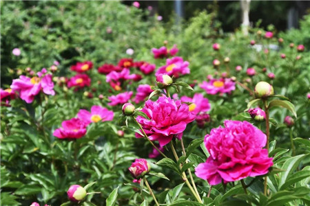 雞冠洞芍藥分布在牡丹叢中,共有8大色系、11個品種10000余株,現(xiàn)花開正艷,燦爛芬芳!