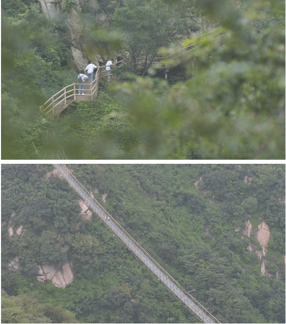 行至山中峰,便是七峰山遠(yuǎn)近聞名的高空玻璃橋了。