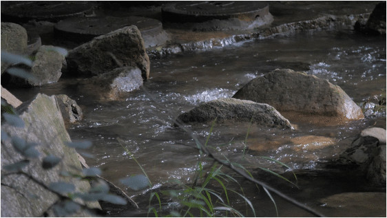 林間流水潺潺,漸有蟬鳴鳥鳴,佳人涉水過(guò),拂面清風(fēng)柔。