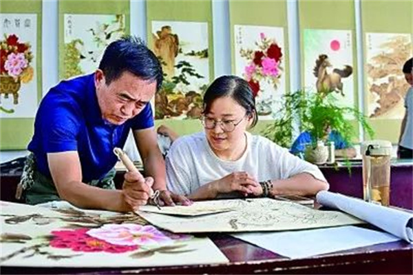 “我在烙畫廠工作幾十年,見證了南陽烙畫的發(fā)展。南陽烙畫主要工序有構(gòu)圖、選材、起烙樣、烘燙、題款、裝裱等,技法有平烘、撕毛、點皴等,題材涵蓋人物、山水、花鳥等。南陽烙畫在傳承木板、宣紙、絲絹烙畫的基礎(chǔ)上,創(chuàng)新了絲絹套色烙畫,使得絲絹套色烙畫在傳承傳統(tǒng)烙畫古色古香、古樸典雅的同時,增添了更多的藝術(shù)表現(xiàn)形式,色彩華麗逼真、內(nèi)涵豐富。”南陽市烙畫廠廠長、南陽烙畫省級代表性傳承人李哲介紹。南陽烙畫在傳承中不斷創(chuàng)新發(fā)展,通過對烙筆溫度、運筆速度、按壓力度的控制,巧妙自然地把中西繪畫的各種表現(xiàn)手法和烙畫藝術(shù)融為一體,形成自己獨特的東方藝術(shù)風(fēng)格,2021年被列入國家級非物質(zhì)文化遺產(chǎn)名錄。
