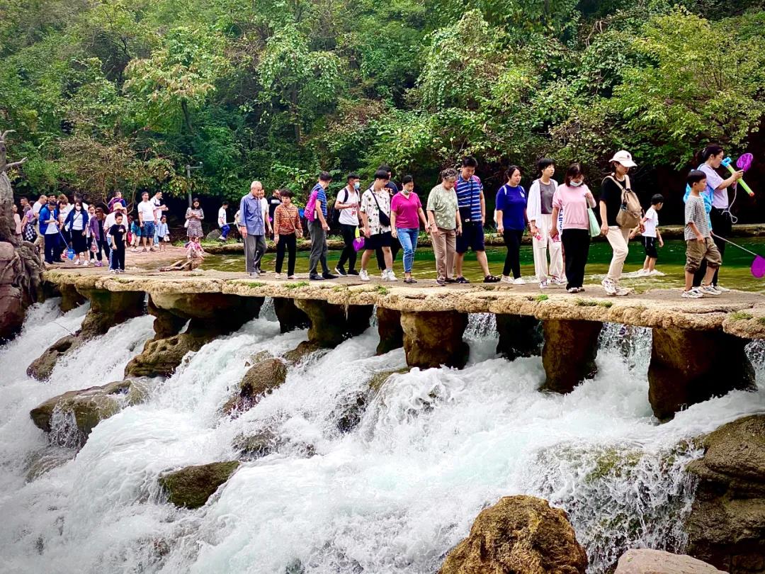 今天是國慶假期第四天,寶泉景區(qū)熱度空前,演藝國潮,山水逍遙,瀑布奇觀,眾多游客行于碧水丹山間,閑夢江南,開啟屬于自己的新潮代。