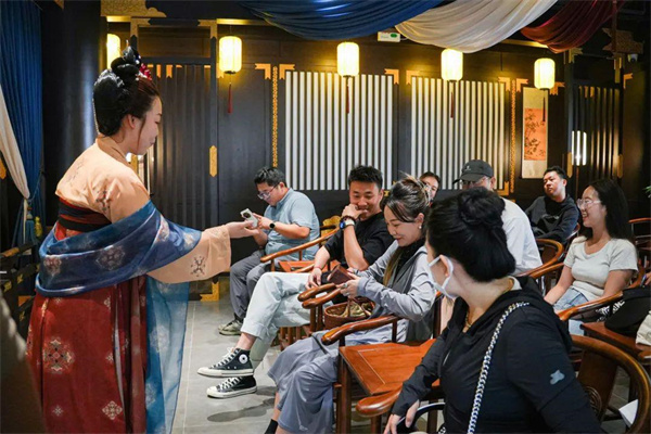 火山熔巖、高空懸橋、竹筏漂流、鬧市奔襲,只需要戴上VR頭盔就能坐上“元宇宙時空穿梭機”,感受公元698年神都洛陽的繁華盛景,體驗一場充滿奇幻色彩的實景沉浸互動戲劇。