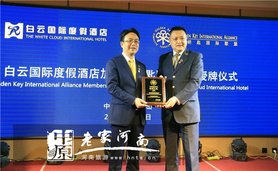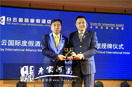 6月6日上午,洛陽(yáng)瑞貝卡酒店管理有限公司旗下白云國(guó)際度假酒店舉行了金鑰匙授徽儀式。金鑰匙國(guó)際組織中國(guó)區(qū)副秘書(shū)長(zhǎng)張濤,嵩縣縣政府、旅游局領(lǐng)導(dǎo),洛陽(yáng)白云山文化發(fā)展旅游有限責(zé)任公司總經(jīng)理蘭海波,河南酒店網(wǎng)CEO張峰,洛陽(yáng)瑞貝卡酒店管理有限公司總經(jīng)理賈存?zhèn)ゼ案鞣酱砑钨e共同參加并見(jiàn)證了此次授徽儀式。