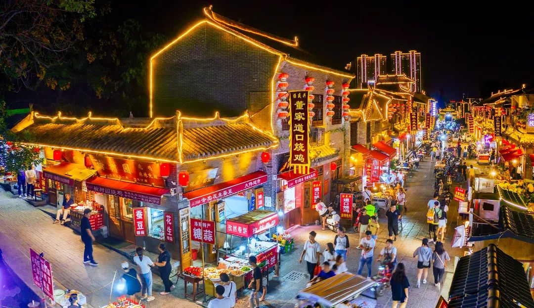 街道兩側(cè)有很多洛陽(yáng)特色小吃和存在了幾十年的老字號(hào)店鋪,如高記油茶、榆樹(shù)園燒雞、漿面條、醬肉等,每一家都有著自己獨(dú)特的秘方和多年的口碑。
