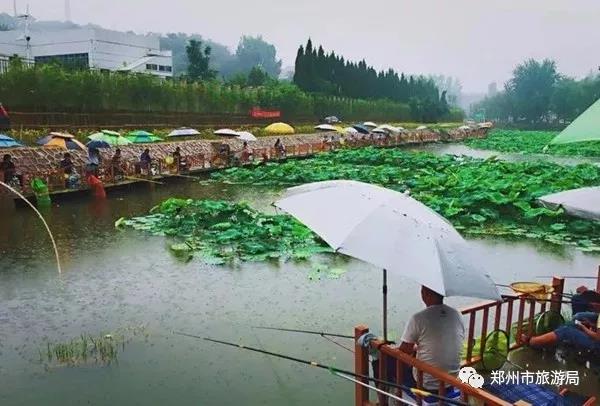 竹海釣魚溝荷花池不僅是荷花的勝地,更是釣魚愛好者的勝地,雨中一望無際的荷葉和泛起朵朵盛開的荷花美不勝收的同時,閑來垂釣一番更是一種情懷。