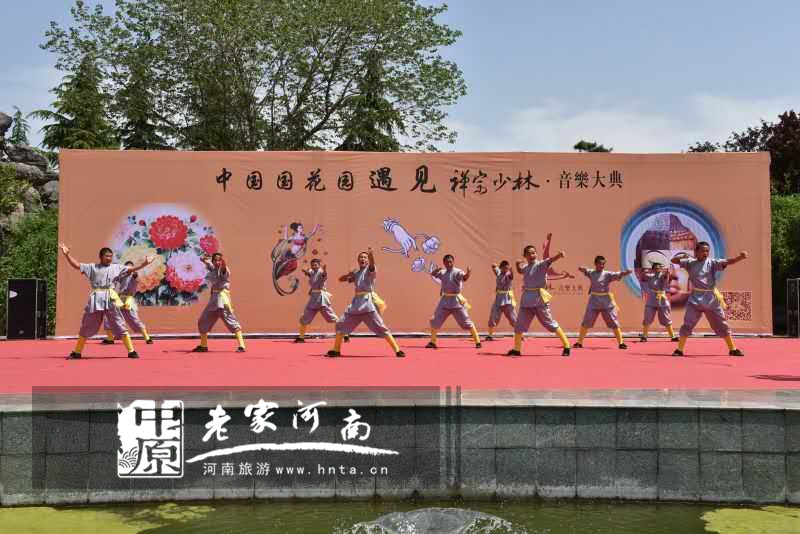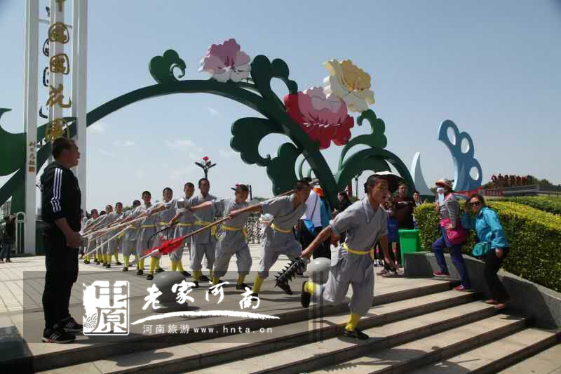 4月16日上午11點(diǎn)左右,中國國花園西門廣場上,一群來自登封《禪宗少林·音樂大典》的少林武僧從假山、牡丹花叢中突然走出,伴隨著雄渾的音樂,現(xiàn)場耍起少林功夫,他們時(shí)而器械對陣、時(shí)而套路演練,贏得了圍觀游客的陣陣掌聲,音樂停止,少林武僧迅速解散,給逛園游客帶來了不少驚喜。