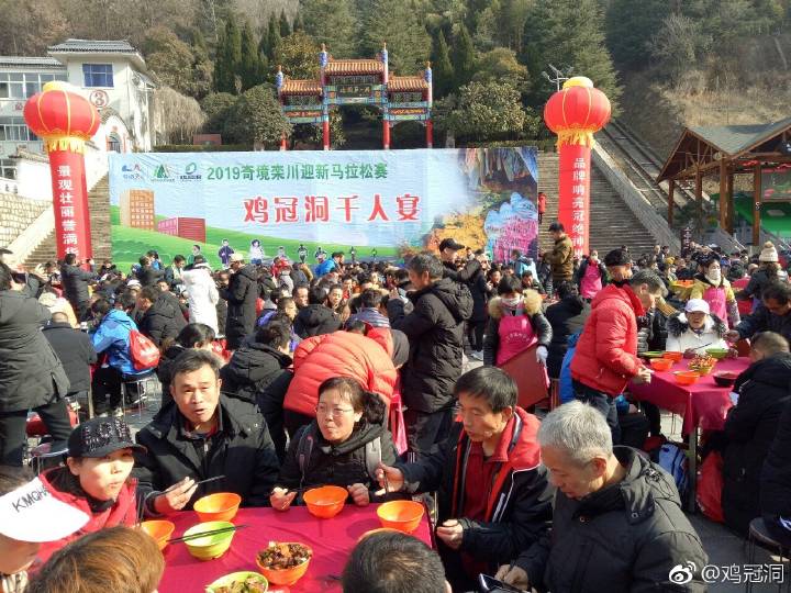 雞冠洞景區(qū)是此次欒半馬賽終點(diǎn)站,景區(qū)為跑馬選手精心準(zhǔn)備了具有濃郁豫西傳統(tǒng)特色的“欒川八大碗千人宴”,在景區(qū)迎賓廣場(chǎng)擺放150張餐桌,供1500余人同時(shí)共品欒川八大碗特色宴。欒川豆腐、紅燒肉、粉條豆芽……在餐桌和人群間穿梭,展示了欒川特色菜肴八大碗,充滿(mǎn)了欒川特色鄉(xiāng)土氣息,是選用山里人自家種的蘿卜、大白菜、野山珍(木耳、香菇、拳菜、黃花菜等)、山里人自家養(yǎng)的土黑豬等綠色有機(jī)食材經(jīng)廚師改良后,以“綠色、健康、營(yíng)養(yǎng)、味美”為特點(diǎn)精心烹飪而成,為選手提供良好的就餐體驗(yàn),場(chǎng)面壯觀,盛況空前。