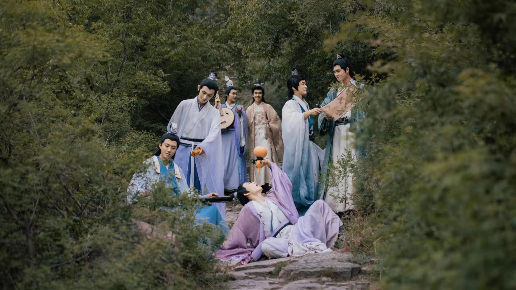 嵇康、阮籍、劉伶、向秀、阮咸、山濤、王戎七人“相與友善”,世為“竹林七賢”,曾在云臺(tái)山景區(qū)隱居活動(dòng)長達(dá)二十年之久。在云臺(tái)山百家?guī)r景點(diǎn)內(nèi),至今保存有“嵇康淬劍池”和“劉伶醒酒臺(tái)”等文物遺跡。如今,竹林七賢不再僅記載于史書,已躍然于游客眼前。自由灑脫的嵇康,能文能武的阮籍,音樂鬼才阮咸,嗜酒如命的劉伶,風(fēng)度仗義的山濤,才華橫溢的向秀,神采秀美的王戎7人從歷史畫卷中穿越而來,在游人面前飲酒縱歌,揮毫潑墨。