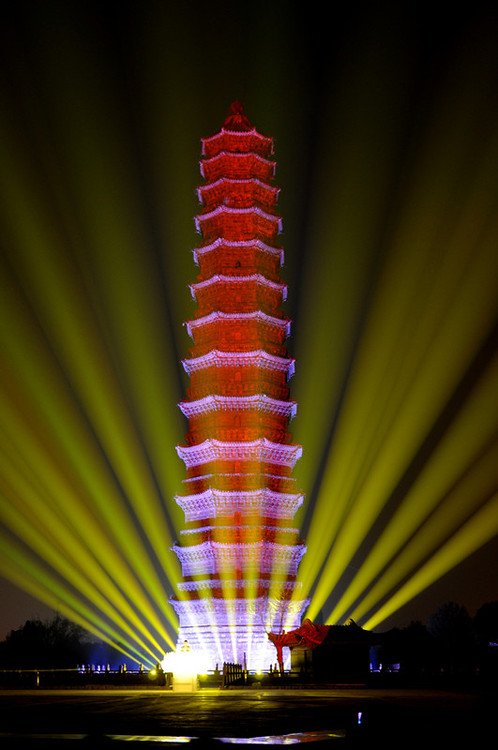 鐵塔。AAAA級景區(qū),中國100家名園之一,是以現(xiàn)存的鐵塔(開寶寺塔)而命名的名勝古跡公園,鐵塔被譽為國寶“天下第一塔”,是開封的鎮(zhèn)市之寶,“鐵塔行云”也是著名的汴梁八景之一。公園東北部與國家級重點保護文物開封古城墻遙相呼應,旁邊是百年學府——河南大學,園內綠樹成蔭,殿閣嵯峨,亭臺映波,風光旖旎,每年7月-8月的荷花節(jié)更是值得一看。每晚還有鐵塔光影秀——《鐵塔傳奇》。