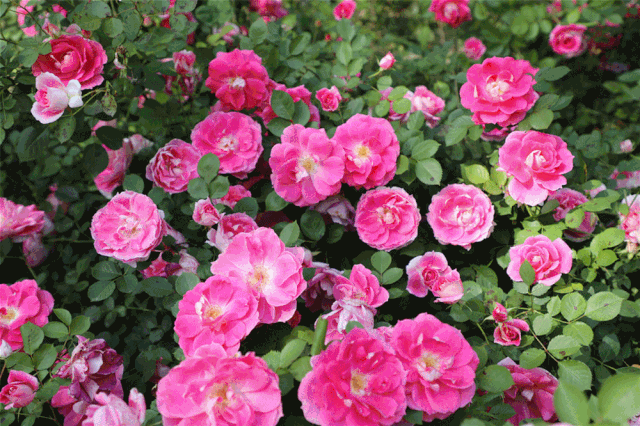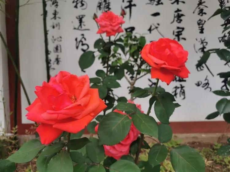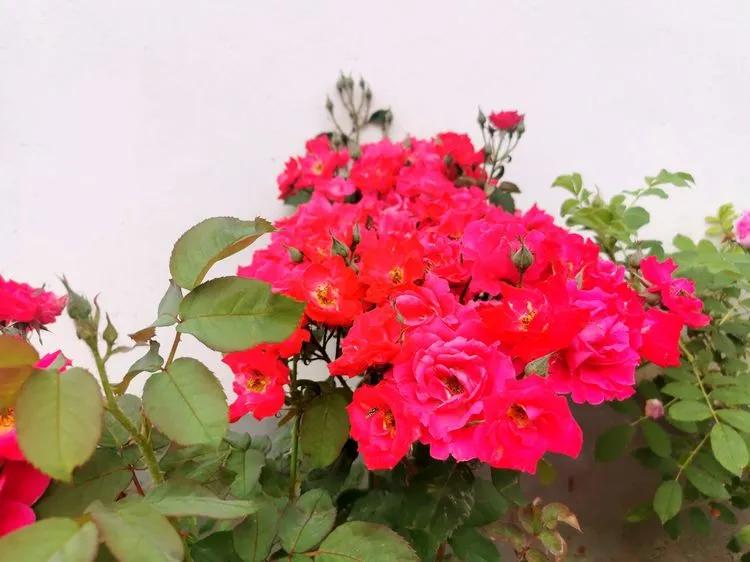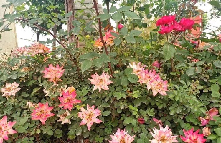 月季遍地,繁花出柵欄,庭前屋后,小道兩旁種。枝繁葉茂,花香飄滿園!曲徑通幽,愜意!愜意!