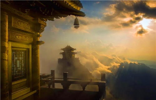 青牛老子函關(guān)去,遺廟蒼山萬(wàn)仞巔。