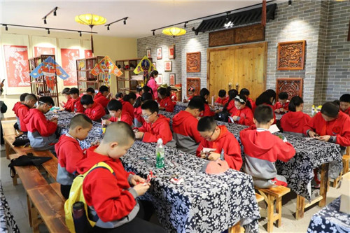 進(jìn)入中原竹寨,同學(xué)們在這里分組體驗了中國非遺民俗文化項目畫臉譜、剪紙、茶藝等,學(xué)習(xí)中國傳統(tǒng)文化。