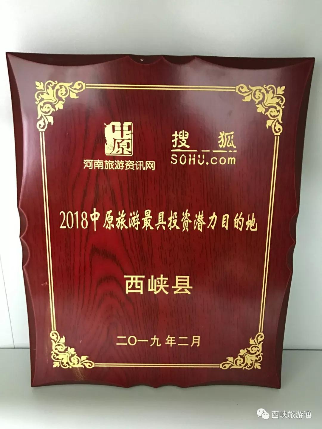 西峽縣榮獲 “2018中原旅游最具投資潛力目的地”獎(jiǎng)。
