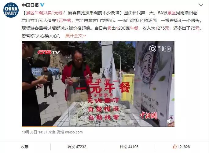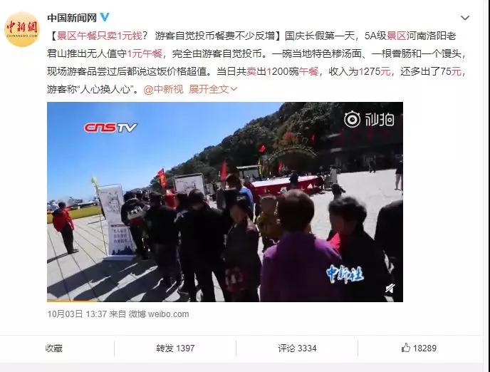 還記得一元午餐嗎?那個曾經(jīng)多次在各大主流媒體報道,引起社會各界廣泛關(guān)注,只需一元就能吃到的,帶著老君山專屬溫度的午餐,在這個十一又將與您見面啦!