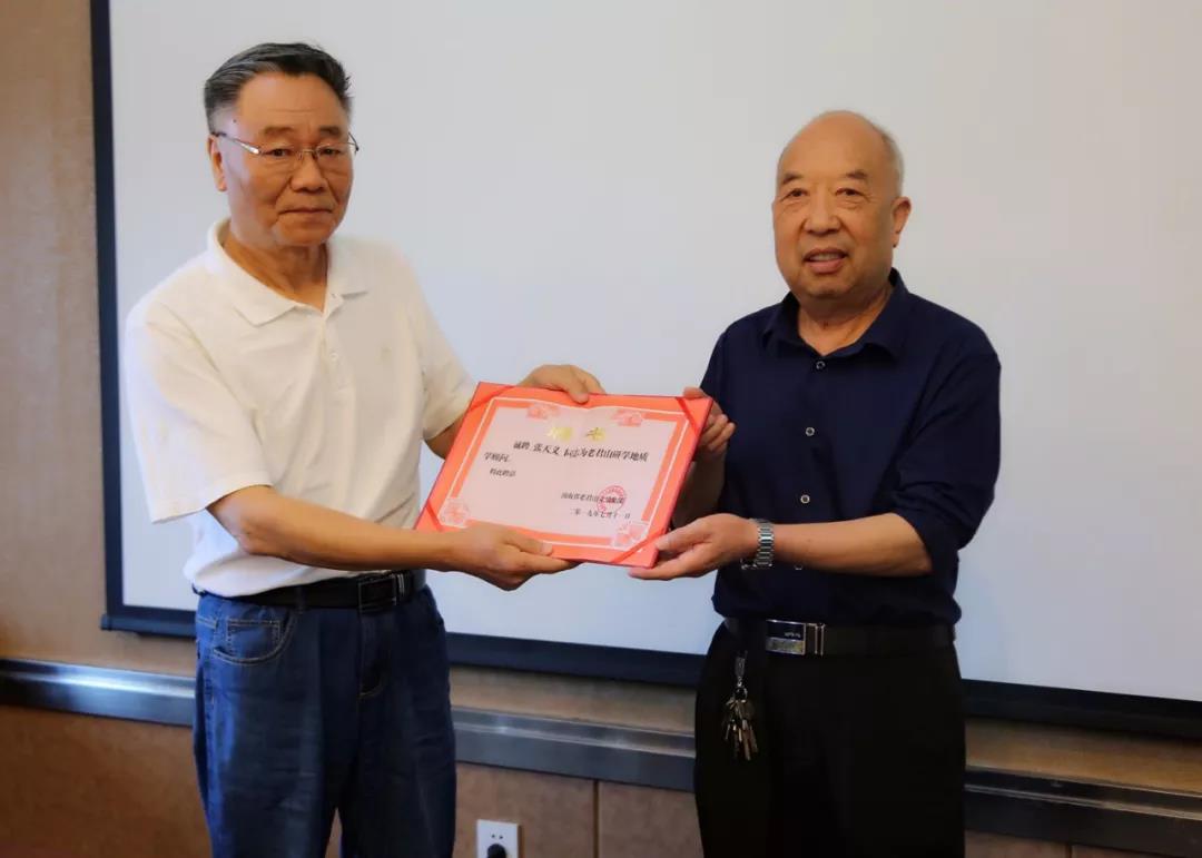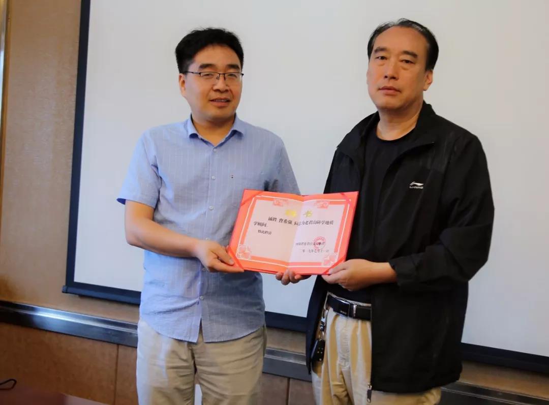老君山文化總顧問張記、老君山林場場長任小敏分別為張?zhí)炝x院長和曹希強主任頒發(fā)聘書,聘請他們?yōu)槔暇窖袑W(xué)地質(zhì)學(xué)顧問。