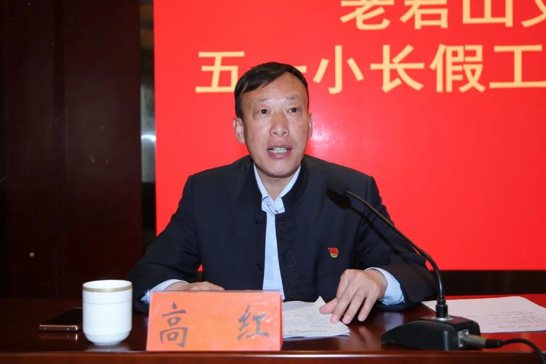 老君山文旅集團董事局主席楊植森作重要講話。他指出,今年“五一小長假”是疫情防控常態(tài)化條件下、全國經(jīng)濟強勁復(fù)蘇態(tài)勢下的首個小長假,景區(qū)即將迎來新的客流高峰,將按照景區(qū)最大承載量的75%接待游客,此次宣讀的接待方案來自景區(qū)管理模式的細化,分工明確,責(zé)任到人,各崗位要認真執(zhí)行并落實。他強調(diào):一是組織保障,五一假期期間應(yīng)高度重視,應(yīng)急預(yù)案要應(yīng)根據(jù)實際情況適時完善并調(diào)整,中高層、黨員干部應(yīng)發(fā)揮先鋒帶頭作用,保障所負責(zé)區(qū)域接待各項工作正常運轉(zhuǎn),體現(xiàn)黨員的先進性;二是生活保障、后勤服務(wù),保障五一假期工作的正常開展;三是安全保障,醫(yī)務(wù)人員輪流上山,保障游客安全,突發(fā)情況工作人員應(yīng)第一時間到現(xiàn)場,加強景區(qū)家庭賓館、小交通統(tǒng)一管理,保證安全、有序;四是人員保障,定崗定責(zé),包區(qū)包段,各大區(qū)各部門相互協(xié)調(diào),密切配合,全力投入到五一接待當中。