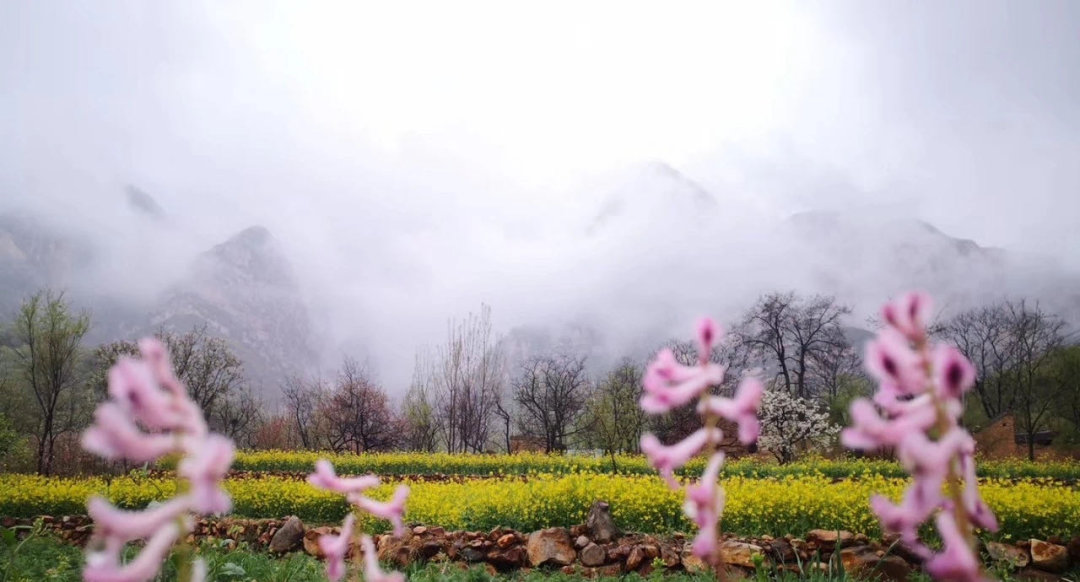 仲春時光的嵩山,空山新雨,云映山麓,枝頭的嫩芽與花朵浪漫微甜。