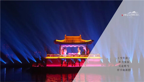 大型水上實景演出《大宋·東京夢華》是從宋詞中去挖掘、去創(chuàng)作。演出復(fù)活了八闕宋詞,它編排精巧,獨辟蹊徑,以張擇端筆下的《清明上河圖》中的景象為背景,重現(xiàn)曾經(jīng)的繁華大宋。讓我們在千年后的今天,還能坐在看臺上,看著如夢如幻的場景,聽著或婉約或豪放的宋詞,感受著宋時吹來的風。