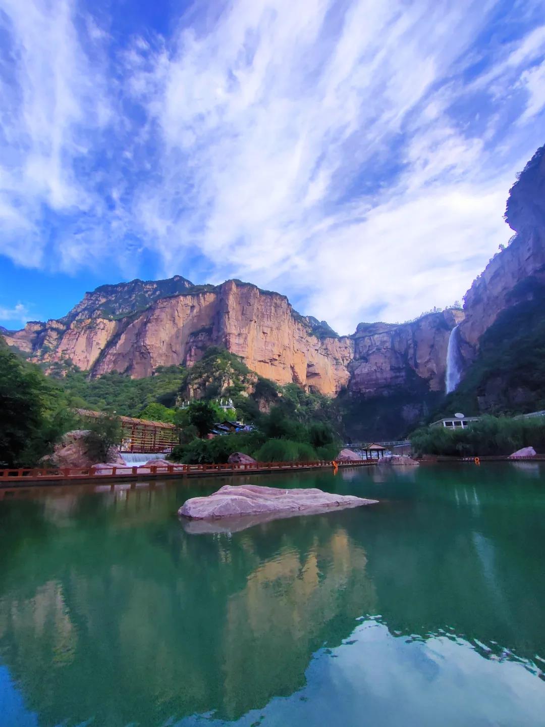 在寶泉藍(lán)天白云下,享受山水間的愜意,仰望最高遠(yuǎn)的天,觀賞最恬淡的云,一切都是剛剛好。