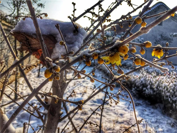 冰天雪地里綻放的臘梅