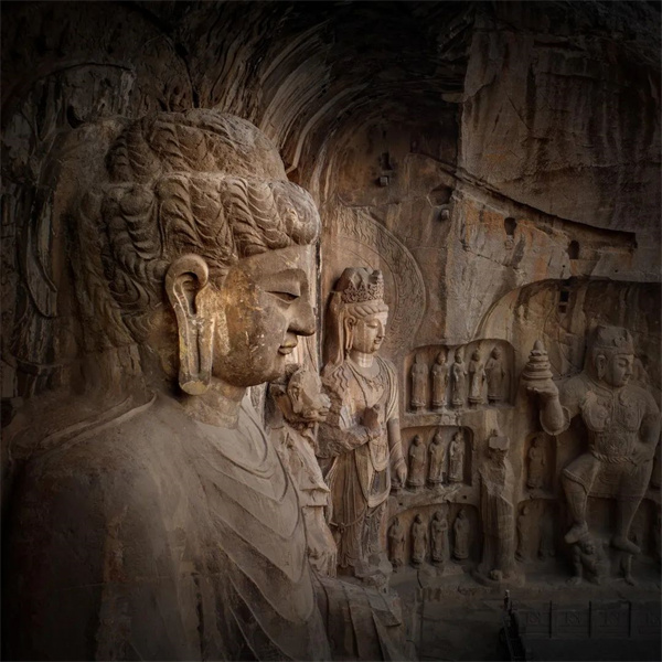 在龍門石窟兩山的崖壁上雕刻著10萬余尊佛像。