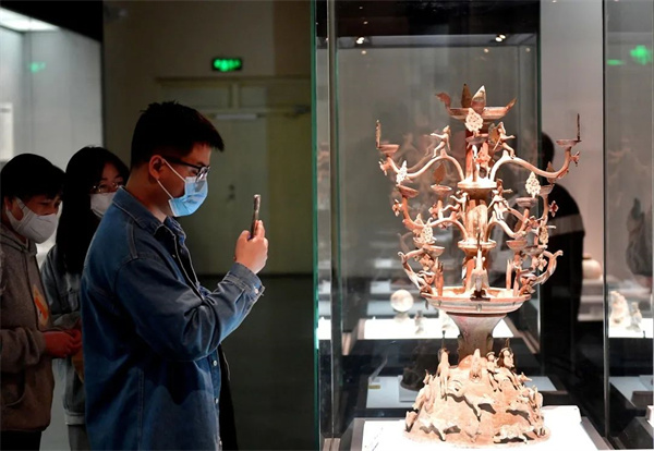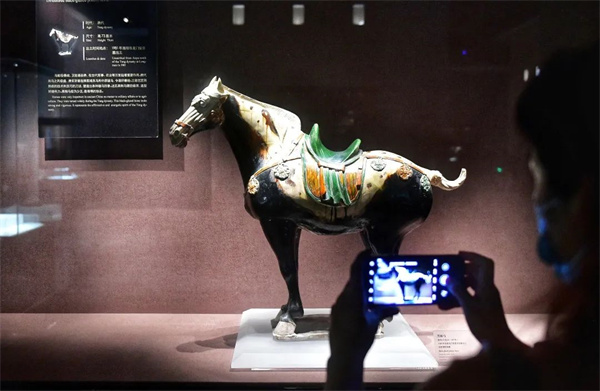 二層是專題展覽,設(shè)有珍寶館、三彩館、宮廷文物展、書畫展等,在這里可以觀賞到博物館的鎮(zhèn)館之寶:曹魏白玉杯、三彩黑釉馬、金絲楠木塔等,爆火的“北魏泥塑佛面”也是讓不少游客拍照留念的“熱門寶藏”。