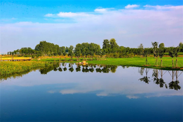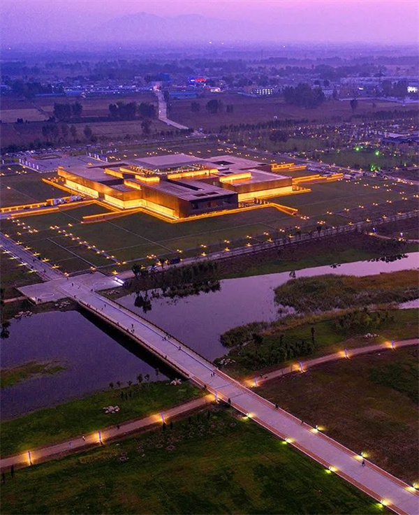 二里頭考古遺址公園占地約1000畝,對(duì)兩處宮殿遺址和“井”字形道路實(shí)施了原址保護(hù)展示,對(duì)古洛河河道進(jìn)行了景觀復(fù)原,最大限度保護(hù)了遺址的真實(shí)性和完整性。