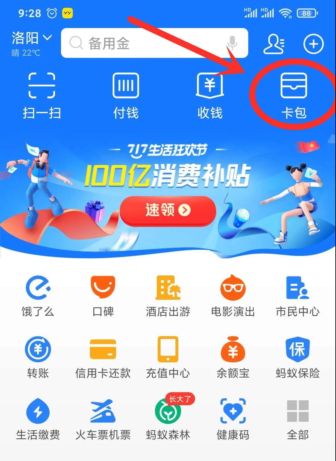 當(dāng)領(lǐng)取完旅游避暑券后,在支付寶首頁頂端,卡包中可直接查看!