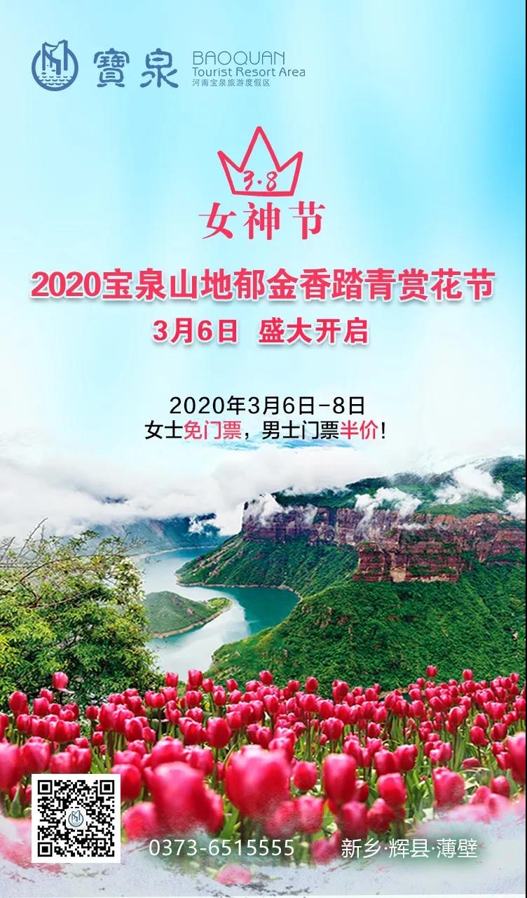 2、為慶祝“三八婦女節(jié)”的到來,向廣大女同胞發(fā)出節(jié)日的問候,河南寶泉旅游度假區(qū)特推出女神節(jié)活動(dòng):女士免門票,男士門票半價(jià)(2020年3月6日-2020年3月8日)。