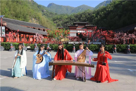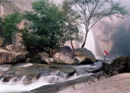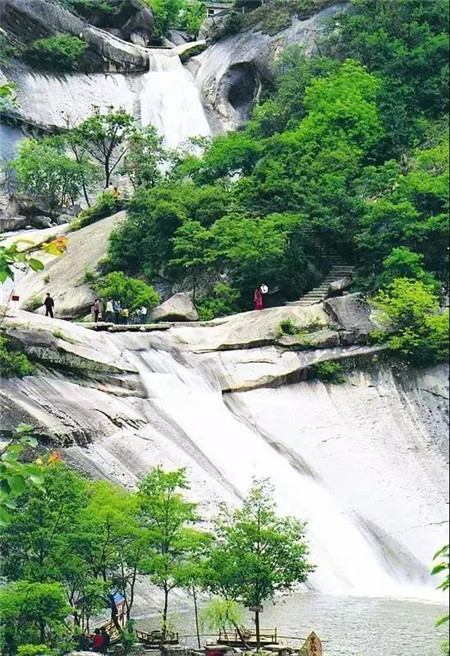 四連梯式瀑布像一條蜿蜒盤踞的蛟龍,騰躍與青山翠谷中噴霧吐珠,揮灑祥云。白龍、龍鳳、青龍、黑龍四組潭瀑相連成串,是中原大地罕見、絕妙的水蝕地貌景觀。