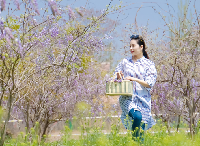 據(jù)兩河灣灣紫藤園工作人員介紹,紫藤園占地面積400畝,栽植了1萬多株紫藤,除了常見的品種外,還有比較少見的日本長穗紫藤、重瓣紫藤、白花紫藤等。此外,這里還有萌寵動物園,生活著孔雀、鴕鳥、矮馬等動物,深受小朋友喜愛。