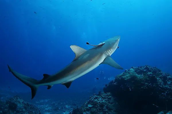 烏翅真鯊的胸鰭及背鰭的頂端是黑色的