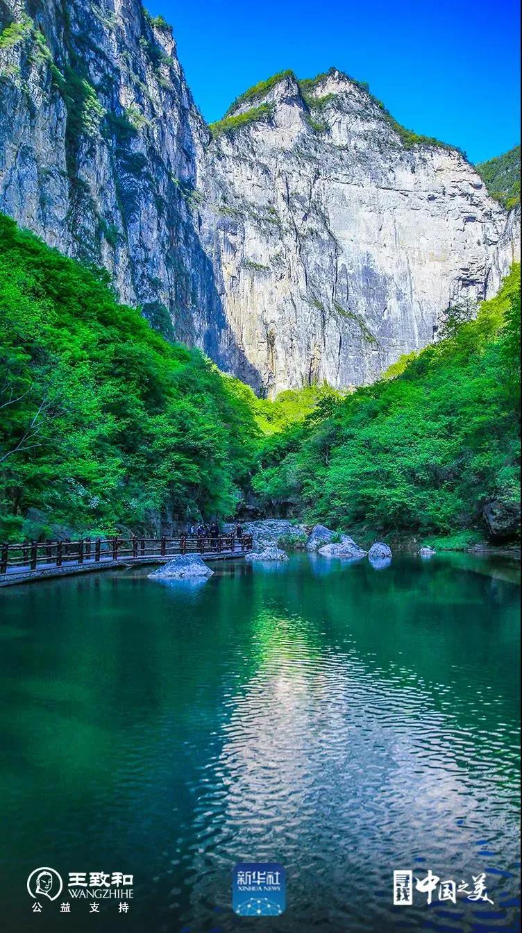 蔚藍(lán)的天空,青翠的林木,清泉叮咚,碧潭如玉