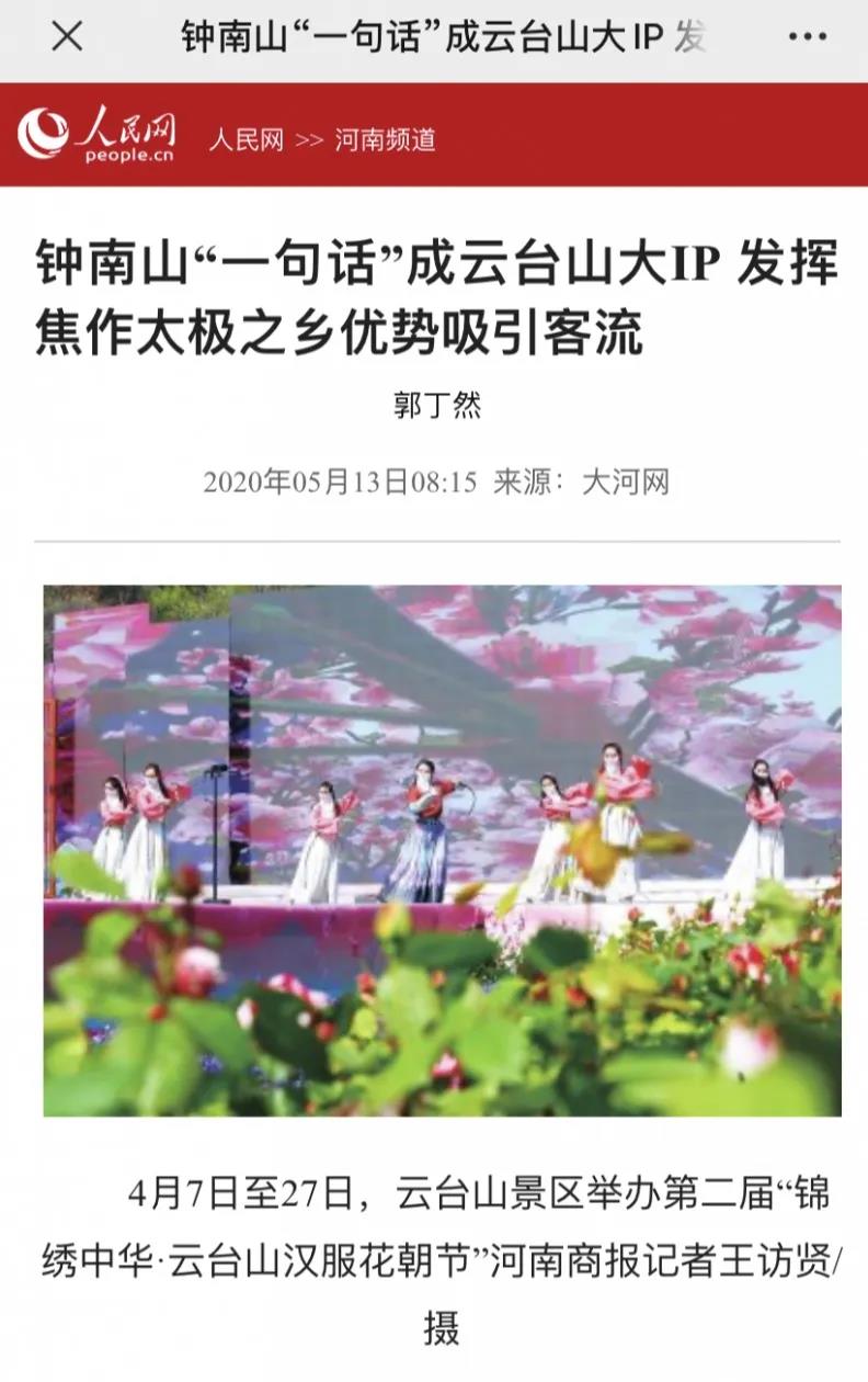 《鐘南山“一句話”成云臺(tái)山大IP 發(fā)揮焦作太極之鄉(xiāng)優(yōu)勢吸引客流》