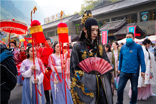 最美人間四月天,錦繡云臺踏春來。4月11日,“老家河南”美好春游季(焦作站)啟動儀式暨錦繡中華·云臺山漢服花朝節(jié)在云臺山景區(qū)盛大開幕。河南省文化和旅游廳廳長姜繼鼎,河南省紀委駐文化和旅游廳紀檢組副組長廖青,河南省文化和旅游廳宣傳推廣處處長王九位,焦作市人民政府副市長牛炎平,焦作市文化廣電和旅游局黨組書記米紀文、副局長李建陽,修武縣委副書記于三龍、副縣長曹軍,云臺山景區(qū)管理局長局長馬春明、黨委書記郭曉黎,以及開封市、安陽市、濟源市、永城市等各地文廣旅局相關領導,巨量引擎河南分公司總經(jīng)理姚瑤,上海雅合風華文化傳播有限公司創(chuàng)始人蔣亞彤等合作方代表,人民網(wǎng)、新華網(wǎng)、中國新聞社、新京報、河南日報、大河網(wǎng)、河南旅游資訊網(wǎng)、馬蜂窩、鳳凰網(wǎng)、搜狐網(wǎng)等近百家新聞媒體與全國漢服達人、漢服同袍共襄盛會。