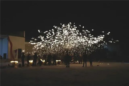 飛舞的雪花,綻放鐵花,把整個表演場地夜空點燃成了火樹銀花的世界,也把現(xiàn)場活動推向一個又一個高潮。