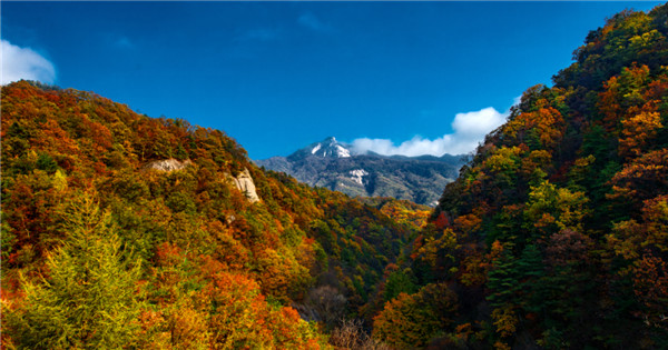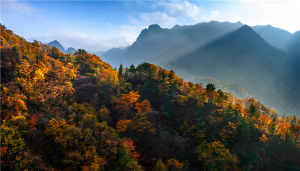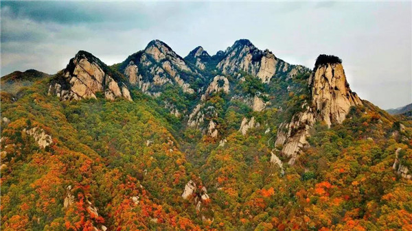 大鵬山海拔2116米,此山極似一只展翅欲飛的鯤鵬。頭部昂然雄起,遠(yuǎn)望蒼天,兩翼側(cè)嶺環(huán)懸外凸,山上林木蔥郁挺拔,如大鵬豐滿的羽毛,景觀氣勢雄偉,漫山紅葉渲染了整座大鵬山似九天鯤鵬,浴火重生。
