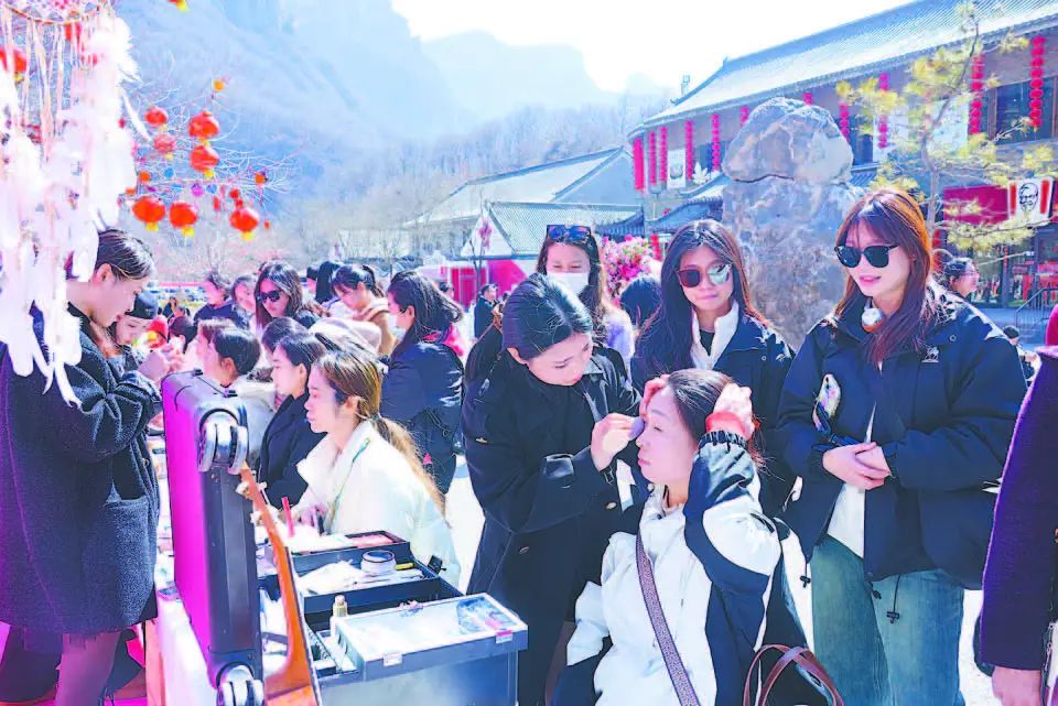 3月8日,云臺(tái)山景區(qū)免費(fèi)為游客化妝、美甲,現(xiàn)場(chǎng)游客紛紛體驗(yàn),興趣盎然。