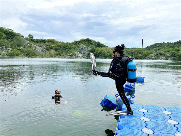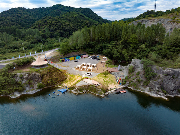 “我們營地總占地面積210畝左右,水面面積45畝,F(xiàn)在營地的主要業(yè)態(tài)是潛水和皮劃艇等運動,以及岸畔的草坪露營,后續(xù)將陸續(xù)打造星云咖啡、燒烤啤酒等一系列項目。目前,營地每天的人流量能達到100至200人次。”星云山谷槳板潛水基地主理人趙曉東介紹,昔日的老國營礦坑已蛻變?yōu)橐煌舯滩ǎ剿Y源豐厚,風(fēng)景獨特秀麗,既能為戶外愛好者提供潛水培訓(xùn)基地,又能為戶外救援、高校訓(xùn)練課程提供實訓(xùn)場地,讓游客真正實現(xiàn)枕星辰而眠、與日月相見。