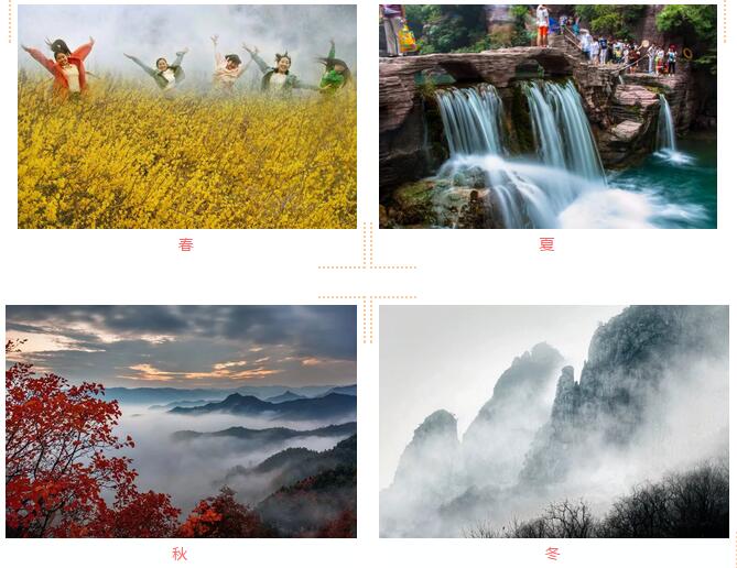 春賞山花,夏觀瀑布,秋觀紅葉,冬賞冰掛嗎,四季美景精彩紛呈!云臺山可謂是美學(xué)上的饕餮盛宴。 春天vs冬天