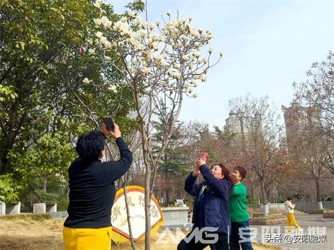 暖陽下、微風(fēng)里,殷墟博物館附近,玉蘭園內(nèi)的玉蘭樹靜靜地伸展著枝條,搖曳生姿,滿樹深深淺淺,有瑩潤(rùn)飽滿的花苞,有才開了兩三片的花瓣,俏立枝頭、柔軟沉靜,盈盈暗香蕩漾在空氣中,引來不少賞花的市民。