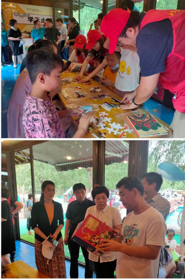 儀式現(xiàn)場,河南省少兒圖書館為寶泉捐贈53冊書籍,內(nèi)容包含兒童文學(xué)、健康美食、生活休閑及立體書,旨在推動文旅融合,實現(xiàn)資源共享。