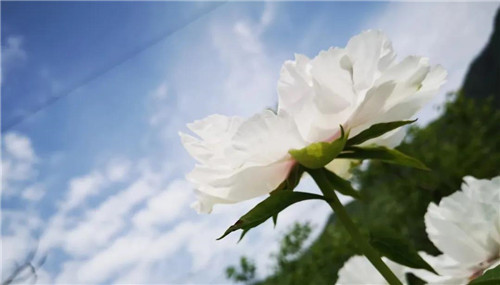 當(dāng)然這里還有最最重要的,置身成片蔥蔥的核桃林下,周身是潔白成團的大片牡丹,抬頭,藍天白云覆于穹頂,踱步,穿梭晶瑩的牡丹花叢,真一個云中田園,忘卻了世俗人間。
