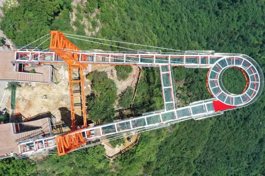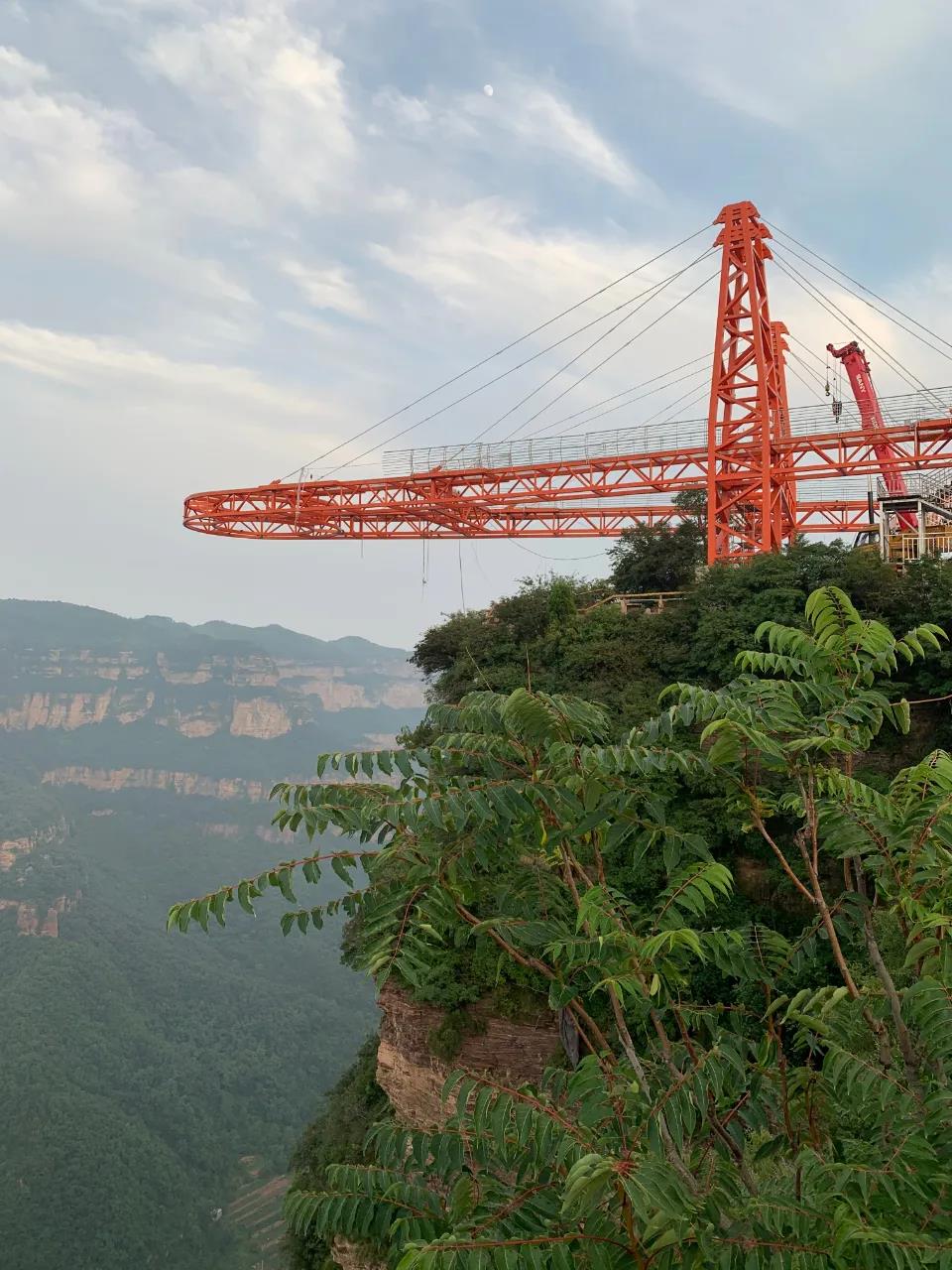 太行大峽谷玻璃橋,位于太行天路景點(diǎn),橋面長(zhǎng)280米、寬2.5米、橋面距谷底相對(duì)高度260米,橋面采用全透明玻璃鋪設(shè)。玻璃橋選用新型復(fù)合材料建造,橋面采用先進(jìn)的9D音頻技術(shù)。站在橋上除了居高臨下欣賞太行大峽谷的壯闊風(fēng)景,一覽峽谷的心曠神怡之外,更能體驗(yàn)透空踩踏的刺激與驚奇。